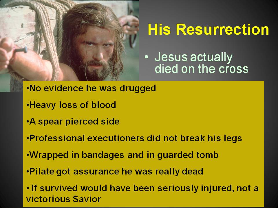 These points are just a quick summary of the evidence. What is obvious, is that if Jesus survived all of this, he would have been seriously injured, not a victorious Savior.